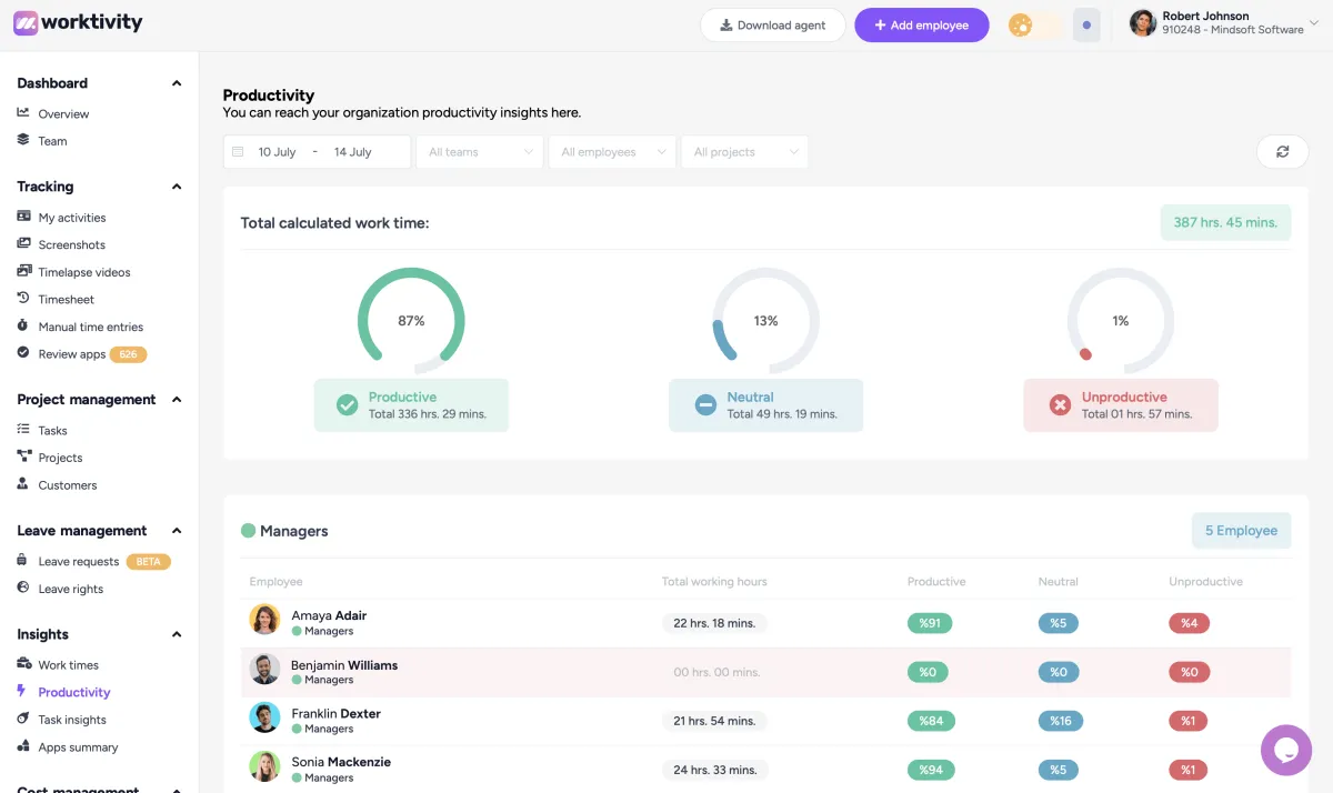 Workforce productivity management, Monitor the activities of your employees and make sure they are productive. Work Tickle Time Tracker measures productivity level based on the app and website usage of your employees. Monitor the activities of your employees and make sure they are productive.