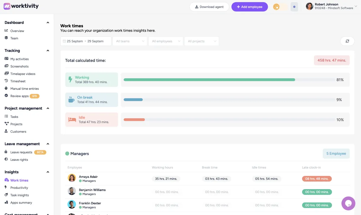 Gain detailed insights into your team's productivity trends and work habits, allowing you to optimize processes.